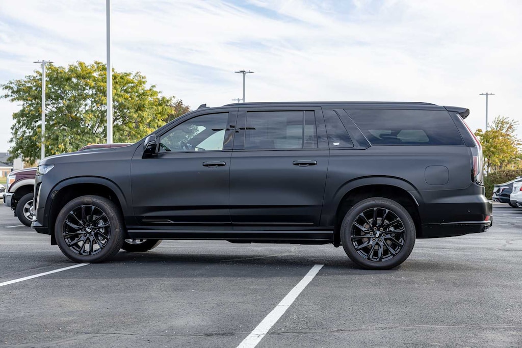 LPO, ONYX PACKAGE includes (SFZ) Monochrome Cadillac emblems, LPO, (RIK) Gloss Black Escalade nameplate, LPO, and (SSX) 22 12-Spoke Gloss Black finish alloy wheels, LPO (Includes wheel locks. SUPER CRUISE a hands-free driver assistance system for use on compatible roads (Beginning with start of production through October 2, 2022, vehicles will be forced to include either (00U) Not Equipped with Super Cruise and/or (02O) Not Equipped with Super Cruise, which will remove Super Cruise and its content. See dealer for details or the window label for the features on a specific vehicle. Always pay attention while driving and when using Super Cruise. Do not use a hand-held device. Visit cadillac.com/supercruise for compatible roads and full details.), ASSIST STEPS, POWER-RETRACTABLE WITH PERIMETER LIGHTING, LPO, FLOOR LINER PACKAGE includes (CAV) All-Weather integrated cargo liner, LPO and (RIB) All-Weather Floor Liner Package, 1st, 2nd and 3rd rows, LPO, OLED INFOTAINMENT EXPERIENCE WITH NAVIGATION AM/FM/SiriusXM with 360L with 16.9 diagonal color information display (displays and controls navigation, music and all features and functions of the vehicle), personalized profiles for each drivers settings, Natural Voice Recognition, Phone Integration for Wireless Apple CarPlay®/Wireless Android Auto® capability for compatible phone, Connected Apps and Teen Driver (STD), ENGINE, 6.2L V8 WITH DYNAMIC FUEL MANAGEMENT Direct Injection and Variable Valve Timing, includes aluminum block construction (420 hp [313.2 kW] @ 5600 rpm, 460 lb-ft of torque [623.7 Nm] @ 4100 rpm) (STD), TRANSMISSION, 10-SPEED AUTOMATIC electronically controlled with overdrive, tow/haul mode and tap up/tap down shifting (STD), WINDOW CONTROL, ALL WINDOWS, EXPRESS-UP/DOWN (auto Express-Up/Down via key fob) (Beginning with start of production, vehicles will be forced to include (00N) Not Equipped with 2nd Row Express-Up Window Control, which removes only 2nd Row Express-Up Window Control functionality. See dealer for details or the window label for the features on a specific vehicle.).